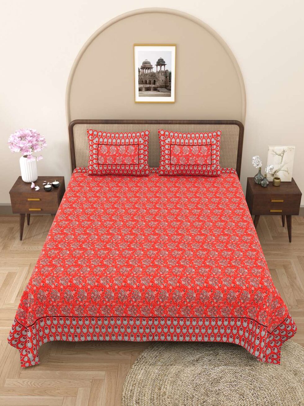100% Pure Cotton Traditional Printed Bedsheet for Double Bed King Size Bedsheet with 2 Pillow Covers